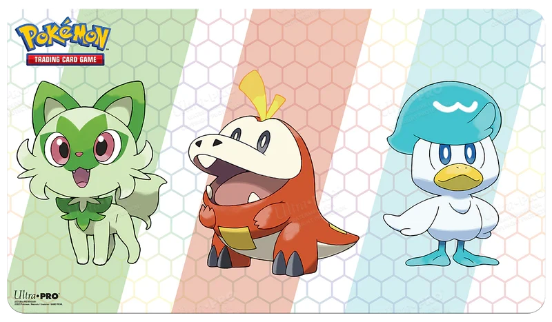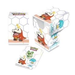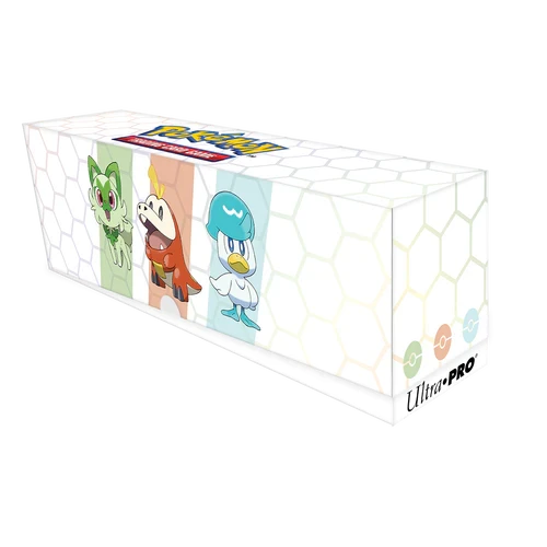 This special bundle includes one playmat, 65 Deck Protector® sleeves, and one Deck Box® with a matching deck divider. All accessories are packaged in a themed card storage box which holds up to 500 sleeved cards. Accessories feature popular starter Pokémon Sprigatito, Fuecoco, and Quaxly. This holiday bundle makes an excellent gift and is a must-have for any Pokémon trainer or collector.