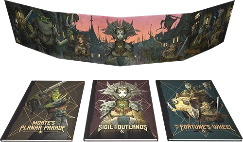 - Sigil and the Outlands (96-page hardcover setting book)—Includes planar character options, details on the fantastic City of Doors, descriptions of the Outlands and the gate-towns that lead to the Outer Planes, and more